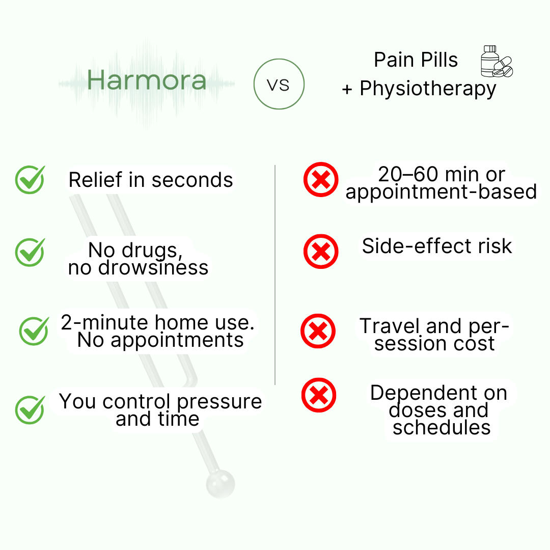The Harmora tuning forks work for back pain, neck tension, shoulder stiffness, knee pain, arthritis, migraines, sciatica, fibromyalgia, and general muscle soreness. The frequencies work at a cellular level, which is why they're effective for almost any type of chronic pain. Over 87% of users report significant relief within the first 24 hours. Whether you choose the 128Hz single fork or the complete 4-frequency kit, you're addressing pain at its root cause.