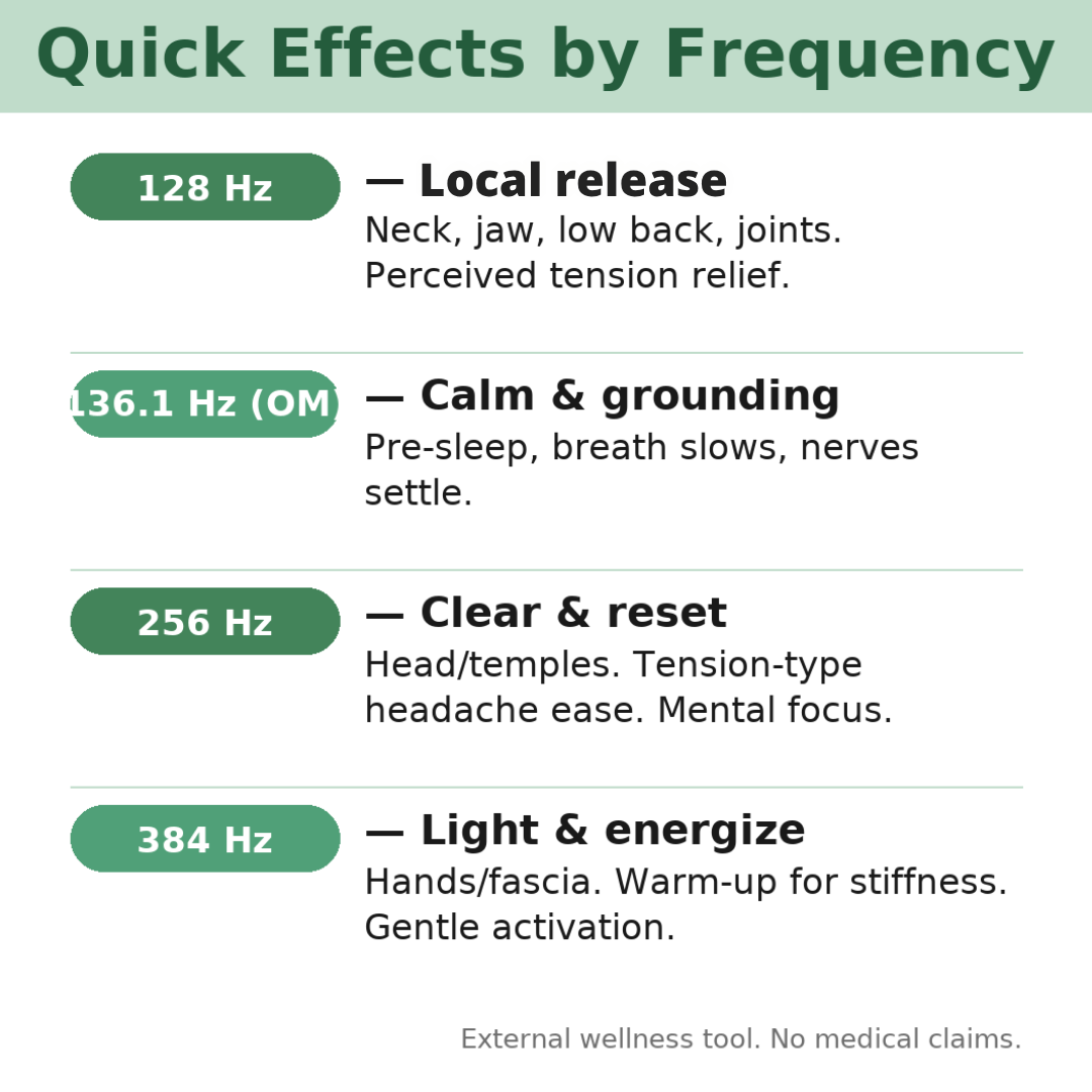 - 136.1Hz (OM) - Calming & grounding (stress, sleep)